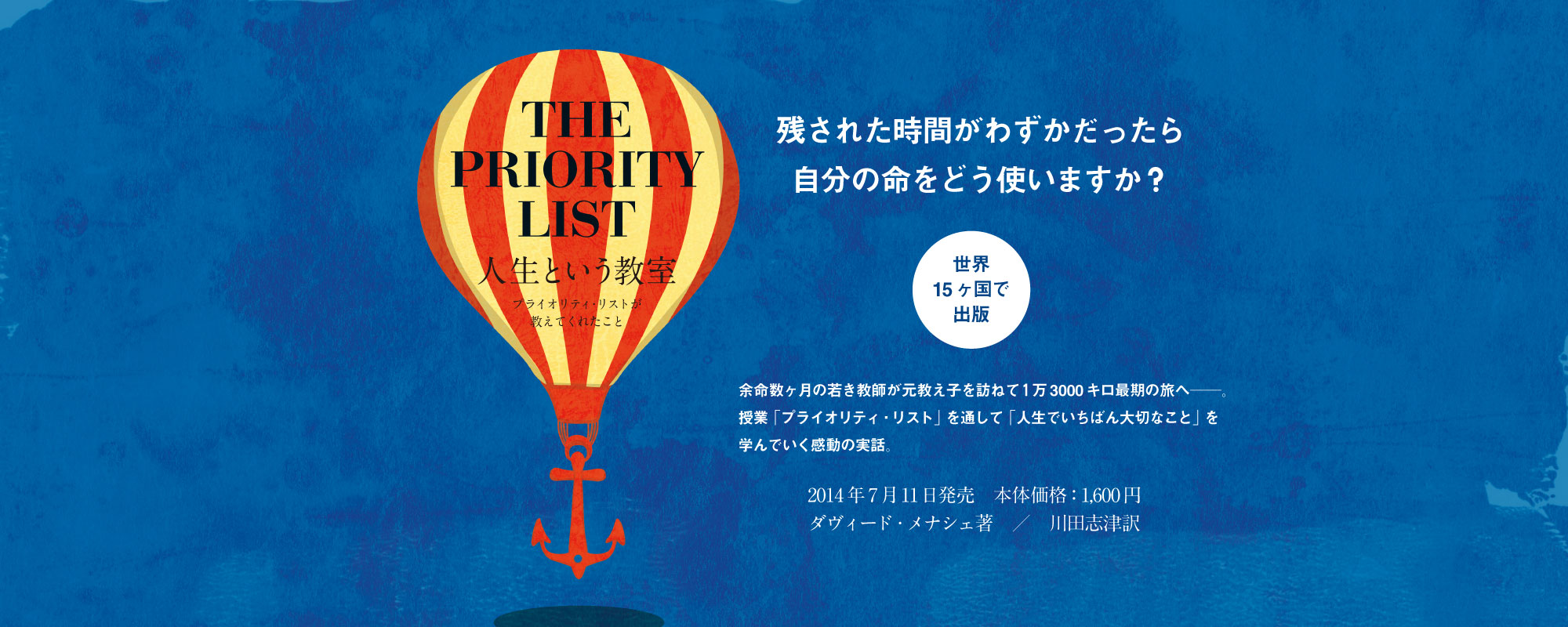 大半の人は、人間に死はつきものだと思っていて、深く考えることはない。 そして人生が無限であるかのように毎日を生きる。 でも自分の死を確信し、そのときを迎える心の準備ができたとき、 初めてどう生きるべきかを学ぶことができるのだ。